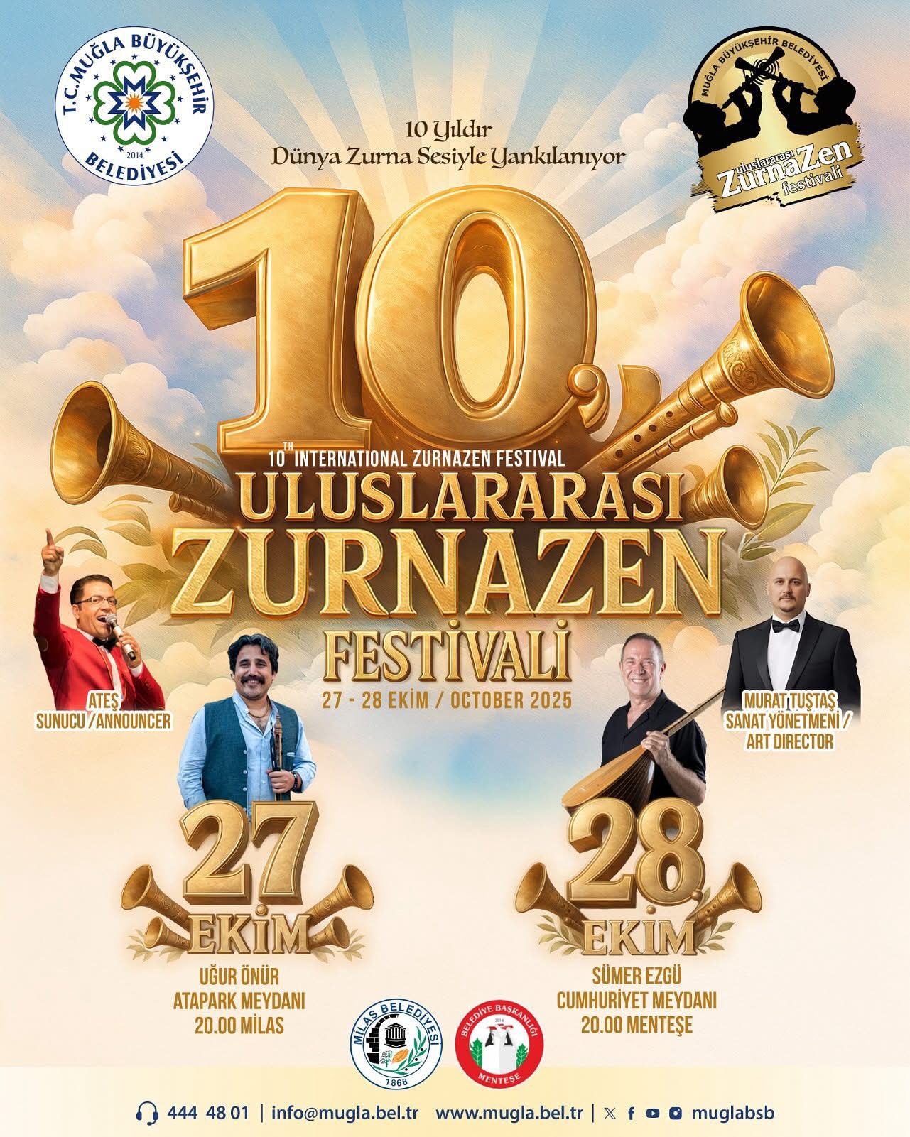 Cumhuriyet Bayramı etkinlikleri çerçevesinde, bu yıl onuncusu düzenlenecek olan Uluslararası Zurnazen Festivali, Dünya’da ve Türkiye’de bir ilki temsil ediyor. Festival, 27 Ekim Pazartesi günü Milas Atapark Meydanı’nda, 28 Ekim Salı günü ise Menteşe Cumhuriyet Meydanı’nda gerçekleştirilecek. Festivale, farklı ülkelerden katılan sanatçılar bayram coşkusuna renk katacak.